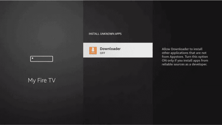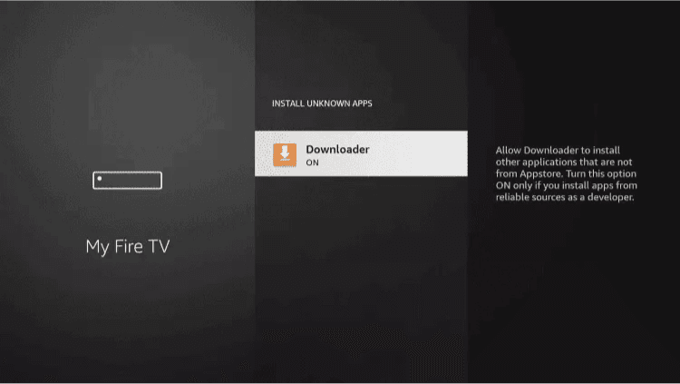 12. This will turn Unknown Sources to On for the Downloader app. This will enable side-loading on your device.