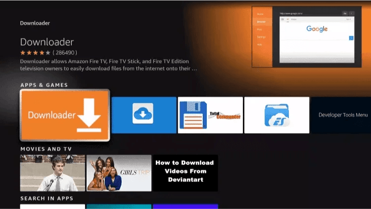3. Search for and select Downloader.